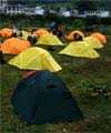 Alu-Schüssel mit warmem Wasser ans Zelt, dem Packen der