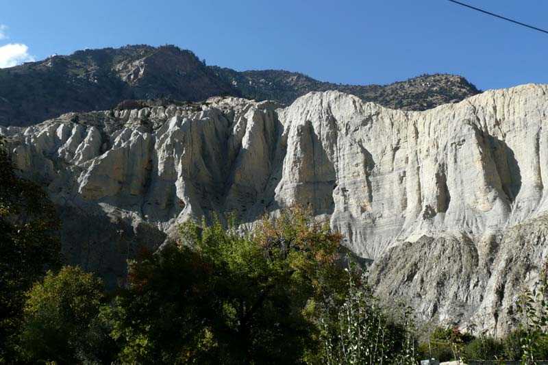 unter wiederholtem Beifall. Richtet an uns ebenfalls den Dank der Nepalesen aus, dass wir einigen von ihnen eine Arbeit gegeben haben, die ihren Familien wieder einige Zeit hilft, sich satt zu essen, zu kleiden und ihre Kinder in die Schule zu schicken. Wir übergeben die kleinen Geldgeschenke, allen drücke ich noch die Hände, einige Nepalesen sind uns sehr ans Herz gewachsen, sind zu Freunden geworden. Ich wende mich ab, um meine hervorstürzenden Tränen nicht allzu offensichtlich zeigen zu müssen. Allen ist weh ums Herz. Wie immer, wenn man sich von guten Freunden verabschiedet und nicht weiß, ob und wann man sie je wiedersieht. Einige von uns haben sich fest vorgenommen, diesem sehr armen, aber wundervollen Land mit seinen freundlichen und glücklichen Menschen bald wieder einen Besuch abzustatten. Die obligatorischen Gruppenfotos werden geschossen. Während die Träger ihr kleines Bündel schnüren und schon ins Kali Gandaki-Tal Richtung Beni laufen, werden wir das reich geschmückte und eingerichtete Kloster in Marpha besichtigen. Darin leben 20 nepalesische Mönche, es gibt einige Gebetsräume, die wir barfuß betreten dürfen. Alles ist neu, die Farben glänzen, an Geld mangelt es hier nicht. In einer kleinen Kneipe bestelle ich danach für alle Mutigen eine Kanne Buttertee, da keine ranzige Yakbutter vorhanden ist, schmeckt er vortrefflich. Wir erforschen die Räume und Dächer des Hauses. Überall sind Äpfel zum Trocknen aufgefädelt. Nüsse oder andere Feldprodukte zum Trocknen ausgebreitet. Aufs Dach kommt man über die nepalesische Treppe, einen angelehnten halbierten Baumstamm, in dessen Rundung Fußtritte geschnitzt sind. 12 Uhr gibt es letztmalig gemeinsam Mittagessen. 14 Uhr 30 verlassen Ralf, Uwe und ich das Hotelgelände zu unserer weiteren Trektour abwärts ins Kali Gandaki-Tal nach Tatopani und über Ghorepani und Ghandruk nach Kare an der Straße Richtung Pokhara, wo der Dhaulagiri Circuit eigentlich endet. Vorher herzlicher Abschied von den 12 Chitwanern, von Ganesh und den verbliebenen Nepalesen, die zur gleichen Zeit den Weg nach Jomoson antreten. Wiedersehen werden wir uns am letzten Nachmittag in Kathmandu. Viel Spaß mit den Krokofanten und Eledilen. Jetzt vermissen wir unseren Freund Phadindra sehr, der uns eigentlich auf unserer weiteren Tour als Führer begleiten sollte. Er ist immer noch bei der Familie des verstorbenen Küchenhelfers in Myagdi, muss dort Rede und Antwort stehen. Begleitet werden wir nun vom 20-jährigen Yogesh und vom 22-jährigen Hems, beide Studenten. Sie werden unsere Führer und gleichzeitig unsere Träger bis nach Pokhara sein. Jeder hat ca. 22 kg an den Stirntrageriemen hängen, unsere Trekkingsäcke, ein Zweimann-Zelt, ein kleines Einmann-Zelt und für jeden von uns 2 leichte dünne Isomatten, die dicken sperrigen Schaumgummimatten haben wir bei Ganeshs Gepäck gelassen.
