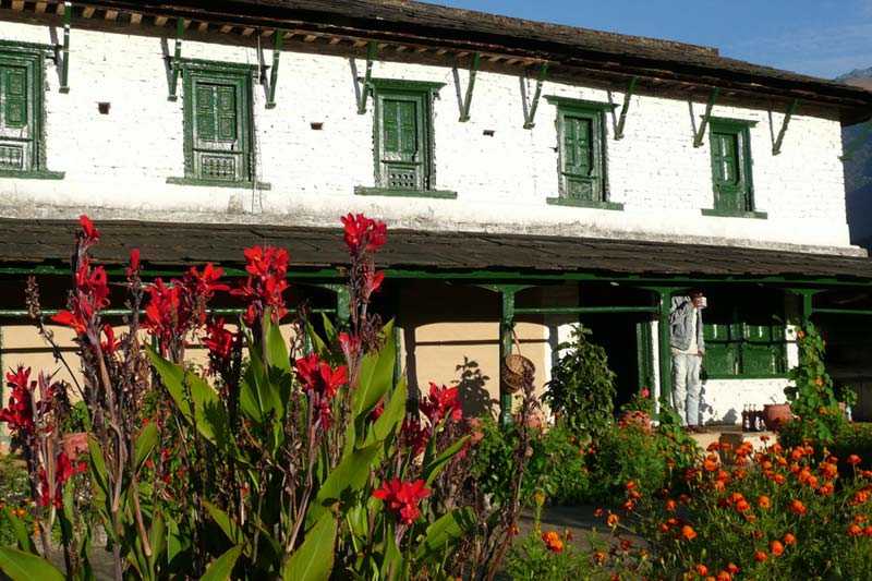 Häusern des Ortes Ghandruk, besuchen noch das Museum. Es sind