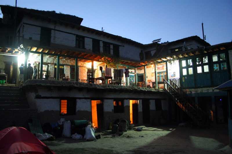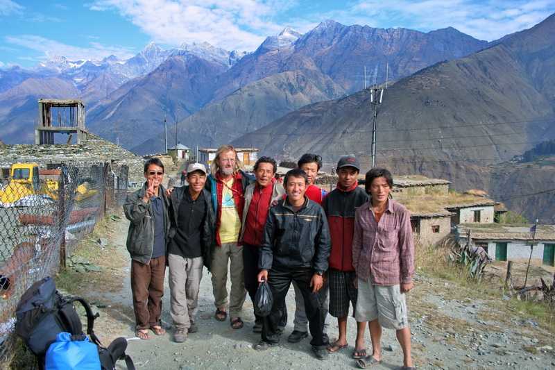 15. 10. 2010 Unser Gepäck und das Küchengepäck wird letztmalig von unseren Leuten die wenigen Meter hoch zur Flugpiste gebracht. Wir erreichen die grasige Schotterpiste in 8 bis 10 Minuten. Durch die windschiefen Bretter des Abfertigungs-Gestells und das klapperige, mit Maschendraht verhängte Ausgangstor, Abflughalle und Gate kann man es ja nicht nennen, bringen wir unser Gepäck auf die Rollbahn. Alles wird mit einer Federwaage vom zipfelbemützten kleinsten Mann des Platzes gewogen. Die Küchenpakete dürfen nicht mit, müssen komplett wieder rausgebracht werden und dürfen nun von unseren Trägern und Küchenhelfern auf dem Rücken die vielen Tage nach Kathmandu geschleppt werden. Obwohl wir den Flieger mit 7 Plätzen gechartert haben, wird noch fremdes Gepäck zu unserem Flug dazugeladen. Trotzdem muss Phadindra 1.500 Rupees für Übergepäck bezahlen, komischerweise an den aalglatten Hotelchef, meinen Freund. Ob das wohl unser freundlicher neuseeländischer Pilot alles mitbekommt, was hier so läuft? 9 Uhr 20 kommt unser Flugzeug an, zwei noch weißhäutige neugierige Touristen steigen aus. Wir aber verabschieden uns herzlich von unseren nepalesischen Trägern und Küchenleuten, die auf dem Landweg nach Kathmandu zurückkehren werden. Nur Phadindra und Dipak fliegen mit uns nach Surkhet. Dipak fährt von Nepalgunj dann ebenfalls mit dem Bus über Land nach Kathmandu zurück, während Phadindra komplett mit uns zurückfliegt.
