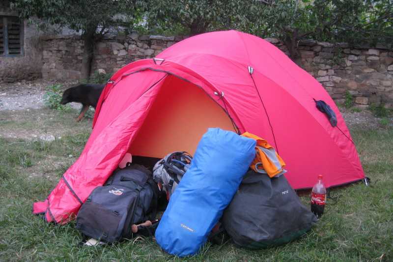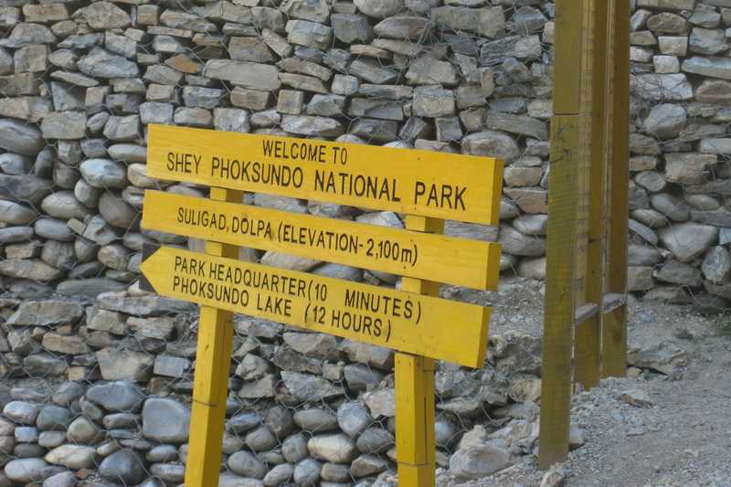 27. 09. 2010 Sanga und Phadindra als unsere Guides fliegen mit uns. Die Flüge sind sehr ruhig, der Pilot hat alles im Griff. Wir durchfliegen steile sattgrüne Täler und haben manchmal nur wenige Meter Platz zu den Bergen. Links liegt direkt am Phoksundo See der Kanjelaruwa (6612 m), hier wird er auch Kang Jeralba genannt, in anderen Karten auch als Kanjirowa Himal bezeichnet. Weiter oben im Nordwesten gibt es noch ein anderes weitläufiges Kanjirowa Himal mit einigen Sechstausendern, der höchste der Kanjirowa South mit 6883 m. Beim Landeanflug sehen wir noch die Kagmara Peaks. Auf 2475 m Höhe liegen die oberen Häuser des Dorfes Juphal auf einer schmalen Hochebene, die oben noch etwas für die Landebahn eingeebnet wurde. Wir erreichen es nach 40 min. Flug und die Landung auf der Graspiste des Dolpo Airport ist vom Feinsten. Die auf dem Landweg hierher gelangten Träger, Küchenhelfer und Guides erwarten uns am Zaun der Flugpiste. Zwei von Ihnen kenne ich von vorhergehenden Besuchen in Nepal, Sonam Rai, den Porterführer und Dipak Rai, unseren Koch. Wir begrüßen uns herzlich. Das Gepäck wird von den Trägern nach unten in den Hof des Mount Putha Hotels getragen, der größten Lodge am Platze. Wir bekommen aus unserer eilig errichteten Küche Tee und heiße Milch, dazu essen wir die früh für uns vorbereiteten Frühstücksbeutel mit gekochtem Ei, Wurst und Chapatis. Das Mittagessen wird schon vorbereitet. Die restlichen Teilnehmer unserer Tour kommen 1,5 Std. später zu uns, auch ihr Flug war vom Feinsten. Ingo erzählt mir, dass Ihre Rucksäcke erst mit Strick festgebunden werden mussten, damit sie beim Flug nicht rausfallen. Und dass der Pilot, ein lustiger Typ, bei seinen ersten Flügen hier vor einem Jahr immer höhenkrank wurde und Kopfschmerzen bekam. Gemeinsam nehmen wir in einem offenen blauen Pavillon unser Mittagessen ein, Pommes frites, Gemüse, Ölsardinen, Weißbrot. Danach packen wir die Trekkingsäcke für unsere Träger und die Maultiere. Wir haben in Surkhet 15 Maultiere (*2) mit Ihren Treibern, den Muli-Pilots angeheuert. 12 Uhr 30 starten wir unser Trekking. Der Weg führt uns hinunter durch das Oberdorf zum großen Hauptdorf Juphal mit den vielen eng stehenden Häusern mit begehbaren Dächern tibetischer Bauart. Es gibt einige große Schulen. Weiter durch Felder mit Mais und durch Wildnis hinunter zum breiten Thuli Bheri Fluss, tibetisch Barbung Tsangpo. Nach zwei Std. erreichen wir über Rupgad den Ort Sulighat, den Eingang zum Shey Phoksundo National Park (SPNP) an einer großen Hängebrücke, wo der Weg über den Fluss zum Phoksundo See hochführt. Hier sind große Armeekasernen und ein Büro, wo man für 1000 Rupees das Permit für den Nationalpark bekommen kann. Es ist aber unbesetzt, so dass wir mit unseren superteuren Permits unbehelligt vorbeiziehen. Wir durchschreiten eine wunderbar weiß und orangefarben angemalte Tor-Chörten. Es erinnert mich sofort an Mustang, wo die gleichen Farben anzutreffen sind. Auf dem breiten Weg geht es allmählich rechts am Fluss aufwärts. Dicke Stromleitungen begleiten uns. Hier sehe ich erstmals kleine geschnitzte hölzerne Götzenfiguren vor den Häusern, die es so nur hier gibt. Ich unterhalte mich mit Santos, der in Kathmandu gerade Intermediate studiert und einmal Englisch-Lehrer werden will, auch deutsch möchte er lernen. Auch einige andere Guides wie Sanga und Yogesh, den wir später treffen werden, wollen jetzt deutsch lernen. Prima. Das ist sehr wichtig, da Adventure Geo Treks ca. 50 % deutsche Kunden hat. Sogar Wikinger Reisen schickt uns Kunden und führt mit uns Treks durch. Am heutigen Trekkingziel Dunai (2140 m) werden wir im Hof der Blue Sheep Lodge unsere nagelneuen roten geodätischen Zelte der Art Sherpa Dome Plus errichten. Deren Gestänge ist jetzt aus Aluminium mit Gummizug, nicht mehr aus den einzelnen schwarzen schweren Glasfiberstangen. Auch Küchen-, Speise-, Dusch- und Toilettenzelt sind neu, sowie die Tische und Alu-Klappstühle. Es sind bereits zwei andere kleinere Reisegruppen im großen Hof der Lodge anwesend. Der größere Ort Dunai ist die Distrikthauptstadt von Dolpo mit mehreren Tempeln, Polizeistation, Hotels und Post. Kurz nach 18 Uhr geht die Sonne unter. Unsere Leute haben sich in den Zelten eingerichtet, ich weise alle noch einmal auf den Gebrauch des Baumwoll-Inlets als Schlafsack-Schoner hin. Kerstin kommt aufgeregt zu mir, ein Maultier hat gleich am ersten Tag ihren nagelneuen Ortlieb-Packsack samt Innensack an einem scharfkantigen Felsen ca. 4 cm aufgeschlitzt, sie ist außer sich. Schreibt in großen Buchstaben ihren Namen darauf und verlangt, dass dieser Sack zukünftig nur noch auf einem Porterrücken transportiert werden darf. Was ich und Phadindra ihr auch versprechen. Der Kunde ist König. Jana sieht das buddhistisch gelassener, ihr wäre das schon öfter hier in Nepal passiert, damit müsse man rechnen, meint sie lakonisch. Unser Abendessen nehmen wir in einem dunklen Raum der Lodge ein. An den Wänden gemalte buddhistische Motive, war das mal ein Kloster früher, wer weiß? Sanga hält seine professionelle große Begrüßungsansprache, erklärt allen den Ablauf eines Trekking-Tages und stellt uns alle Mitglieder unserer nepalesischen Begleitmannschaft vor. Er bittet uns, auf unsere Wertsachen zu achten, nachts keine Schuhe oder andere Sachen außerhalb der Zelte zu lassen, da es hier schon einmal zu Diebstählen kommen könnte. Nachts sind es 11 Grad im Zelt. + 115 / - 450 m in 3:15 Std. (15 min. Pause) |