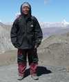 08. 10. Namgung oder Luri Gompa. 6 Uhr 30 aufstehen, kurz vor acht marschieren wir los, den Berg 600 Höhenmeter hinauf zum Sela oder Shey Bhanjyang Pass (5010 m). Wir durchschreiten ein gerölliges Flusstal, das vielfach noch von Eis überzogen ist, gelangen in das nächste ebenso mit Geröll bedeckte Flusstal. Mein Schnupfen und Nasenbluten machen mir zu schaffen. 10 Uhr 30 erreichen wir den Pass. Vor uns im Süden ragt der nahe weiße Koloss des Kanjelaruwa oder Kanjirowa (6612 m) auf. Die obligatorischen Gipfelfotos, denen man sich leider nicht entziehen kann, werden geschossen.