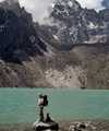 28. 09. 7 Uhr Frühstück. Wir wandern heute hinauf nach Gokyo, das Wetter wird sonnig, später gute Sicht, laufen immer im Tal vor den Gletschermoränen und den steilen schneebedeckten Felshängen nach Fangka. Hier verschüttete vor kurzem eine Schneelawine eine japanische Trekkinggruppe beim Frühstück, alle tot. Kommen an den ersten kleinen See, dann den Gokyo Second Lake, den Zweiten, erhaschen einen kurzen Blick auf den Sattel des Chola La Passes, den wir übermorgen überqueren wollen.