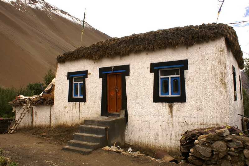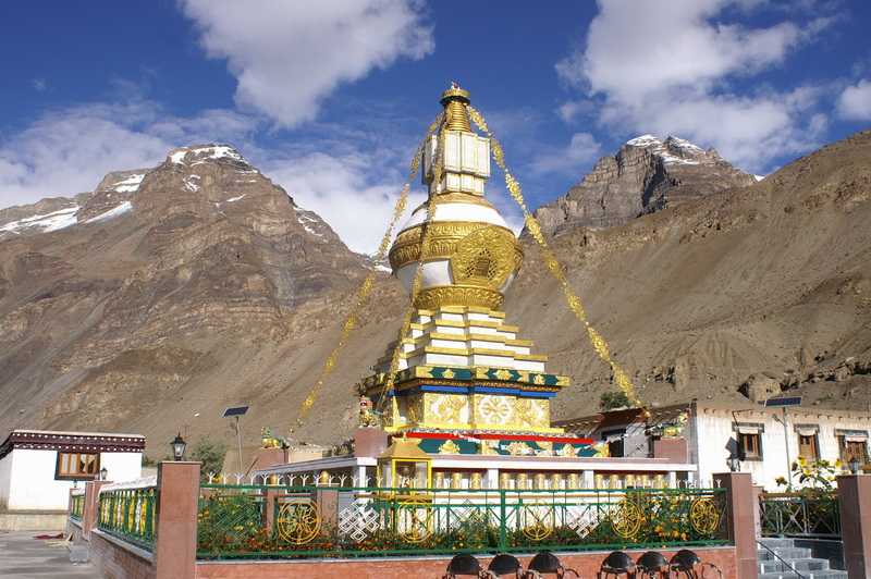 12.09.2009 ... Wir haben von oben gute Aussicht auf Lari, Tabo, den Neubau der Schulanlage bei Lari. Das Seitental sieht wie eine Mondlandschaft aus, stark zerklüftete Steinsandhänge zu beiden Seiten. Zurück in Tabo genießen wir Gebäck und einen Filterkaffee in einer German Bakery. Ein Verkäufer erzählt uns, dass die Straßen in beide Richtungen unpassierbar sind, Richtung Tibet ist eine Brücke eingestürzt und Richtung Kaza sind einige Straßenabschnitte verschüttet, dazwischen pendeln Fahrzeuge, um Wichtiges zu transportieren. Die Pässe Kunzum, Baralacha und Rohtang sind gesperrt. Vor 10 Tagen ist diese Situation schon einmal aufgetreten.