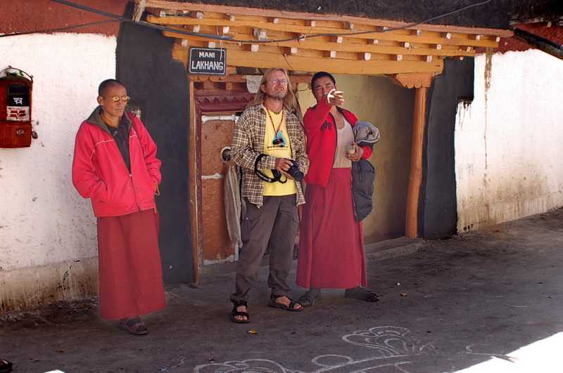 15.09.2009 ... Es gibt 1000-jährige Thankas aus Tibet, mit feinem Pinsel auf Stoff gemalt, zum Schutz mit Tüchern abgedeckt. In der Hauptgebetshalle sind alte Übersetzungen der Sikhs in den Buddhismus, die Taras von 6 Rinchen Zangpos und 8 Medizin-Buddhas ausgestellt. Das ganze Jahr über leben 170 Mönche hier, im Sommer sind es 300, unterhalb gibt es eine große Klosterschule. Zur Zeit ist der hohe Abt Gelong Gedsel anwesend, er unterrichtet hier Mönchsstudenten. Oberhalb der Ki Monastry liegen auf zwei Bergen weitere kleine Klöster, sogar eine Stromleitung führt dort hinauf. Im winzigen Klostermuseum kaufen wir Gebetsfahnen mit tibetischer Boddhi-Schrift und ein Büchlein über die Klostergeschichte. Sogar übernachten kann man hier. In der Nähe beobachten wir einen großen Adler und einige wilde Bergziegen. Vom Kloster geht die Straße gleich weiter hoch und nach weiteren 8 km erreichen wir auf 4205 m Kibber, das höchstgelegene Dorf der Welt mit Autostraßenanbindung und Elektrizität. Am Ortseingang liegt das Norling Guest House, geführt von einem jungen sympatischen Nepalesen. Schöne Zimmer, auf den frisch bezogenen Betten kuschelige 3x3 m Decken sowie genug Extradecken, wir haben eine eigene Toilette und Dusche mit Boiler, da aber keine Energie da ist, gibt es nur kaltes Wasser. Als Beleuchtung dienen Kerzen, die praktischerweise unten einen breiten Wachsrand haben, sodass sie nur schwer umkippen können. Vor unseren Zimmern eine Terrasse mit schönem Ausblick. Daneben die Government Secondary School. Im Halbkreis liegen die Wohnhäuser an den Hang geschmiegt, ein malerischer Ort mit einigen Unterkünften. Bei einem ersten Rundgang laufe ich über duftende hellgelbe reife Weizenfelder, zum Ernten bereit. Bei einem ausführlichen Rundgang besichtigen wir die großen Häuser im tibetischen Baustil mit den schönen schrägen Fenstern und das kleine Kloster von Kibber. Das Dorf ist sehr sauber, es liegt kein Müll herum, der Slogan „Green Spiti – Clean Spiti“ scheint hier zu fruchten, was in dieser Region noch lange nicht üblich ist. Es scheinen öfter Touristen hier Station zu machen, da uns einige Bewohner ansprechen nach Geld oder uns Ketten und Schmuck verkaufen wollen. An der Schule sind Sprüche angemalt: School is the real temple for a student. Truth fears no examination. Silence is gold time is money. First deserve than desire. Rest is rust. Sound mind in a sound body. Green and clean Kibber. Work is worship. Knowledge is the light of life. Honesty is the best policy. Knowledge is power. Avoid Aids. Auf einer weiteren Bergebene ist das Dörfchen Chichang zu sehen, es sieht sehr nahe aus, dürfte aber durch ein zwischenliegendes Tal eine Tagestour bis dorthin sein. Von Kibber aus führt ein fünftägiger Trek zum Tsomoriri-See. Das Wandern werde ich auf einen weiteren Aufenthalt hier verschieben müssen. Kurz vor Sonnenuntergang, die 17 Uhr hinter den Bergen abtaucht, sitzen wir auf der sonnenüberfluteten Terasse unseres Hotels und genießen den warmen Abend. Zum Dinner gibt es heute Reis, gebratenes Gemüse und Kartoffeln, scharf gewürzt, dazu einen Salatteller. Da der Chef für seine Überwinterung in Goa am Meer, wo er ebenfalls ein kleines Hotel besitzt, bereits alles gepackt hatte und das Hotel eigentlich schon heute schließen und morgen abreisen wollte, entschuldigt er sich, er hätte keine Vorräte mehr. Uns schmeckt es hervorprächtig. |