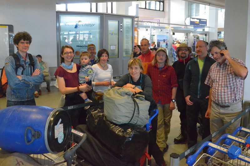 21. 04. 2013 ...Dann treffe ich “meine“ 3 Trekker, Stephan Gast (30), Juliane Jule Römer (34) und Marko Hölz (34), alle drei waschechte Berliner und, wie Sie mir gleich verraten, noch nie groß in den Bergen wandern gewesen. Beim einchecken geht alles mit dem Gepäck in Ordnung. Wir fliegen 15 Uhr von Berlin mit einer Stunde Aufenthalt in Istanbul weiter nach Delhi. 14:50-18:50 (3 Std. Flug) und 19:55-04:00 (5 ½ Std. Flug). Istanbul ist Berlin eine Stunde voraus, Indien 4:30 Stunden, Nepal 4:45 Std. |