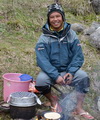01. 05. Kiarkoti. Die Träger (Porter) für unser Gepäck werden von einem einheimischen Vermittler zusammengestellt, der die zuverlässigsten und stärksten Männer für uns aussucht. Getragen wird hier bis 25 kg, jeder will natürlich das leichteste Gepäck haben. Es sind auch einige blutjunge Burschen von ca. 16 Jahren dabei, die aber schnell und kräftig sind. Auch werden die Traglasten nicht wie in Nepal auf Stirn und Rücken getragen, sondern wie normale Rucksäcke geschultert. Die dünnen Hanfstricke schneiden dabei tief in die Rücken der Träger ein. Trotzdem haben sie ein hohes Tempo drauf, sie gehen fast im Laufschritt, machen aber öfter Pause.
