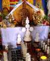 03. 06. Die ganze Nacht regnet es durch, wir werden 6 Uhr 30 von Phadindra mit Tee geweckt. Heute regnet es den ganzen Tag weiter, wir frühstücken unter dem Vordach der Schule, ziehen dann unsere Regensachen an. Der Weg geht durch die kleinere Niederlassung von Yangar, wohin uns auch der Lehrer begleitet, er wohnt hier. Die Menschen sehen hier schon etwas tibetischer aus. An einigen Stellen gehen wir wie in Tunneln zwischen den kleine Holzhäusern durch. Der Weg steigt dann hinter einer Felsspitze zu einem schnell strömenden Fluss. Halb 12 pausieren wir an einem kleinen Bach auf einer Waldlichtung unter einer schnell gespannten blauen Plastplane auf großen Steinen, ringsum rinnt der Regen herab. Weiter lesen (und Fotos anschauen) ...