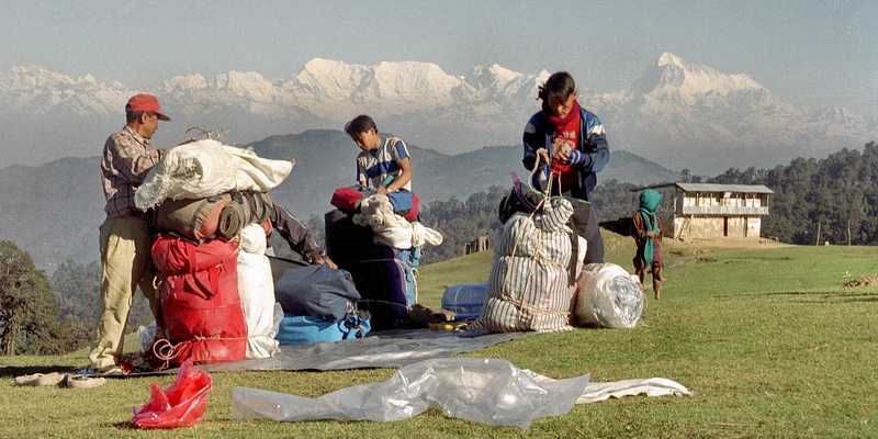 08.04.2003 Das heißt: Baden nicht erlaubt – Gebetsstätte. Kurze Besichtigung des Ortes mit Besuch einer tibetischen Bhatti-Lodge = Teehaus. Das Bier muss heimlich aus Teetassen getrunken werden, Flasche unterm Tisch versteckt. Das Dorf ist von Maoisten infiltriert, zu sehen immer an den wehenden roten Fahnen mit gelbem Hammer- und Sichelemblem an möglichst überlangem Mast, diese verbieten auch den Alkoholaus-schank selbst an Touristen und kassieren diese noch ab. Den geforderten Raubzoll zahlt Niru ohne unser Beisein aus seiner Kasse. + 405 / - 195 m in 6 Std. |