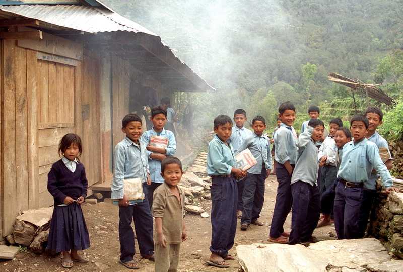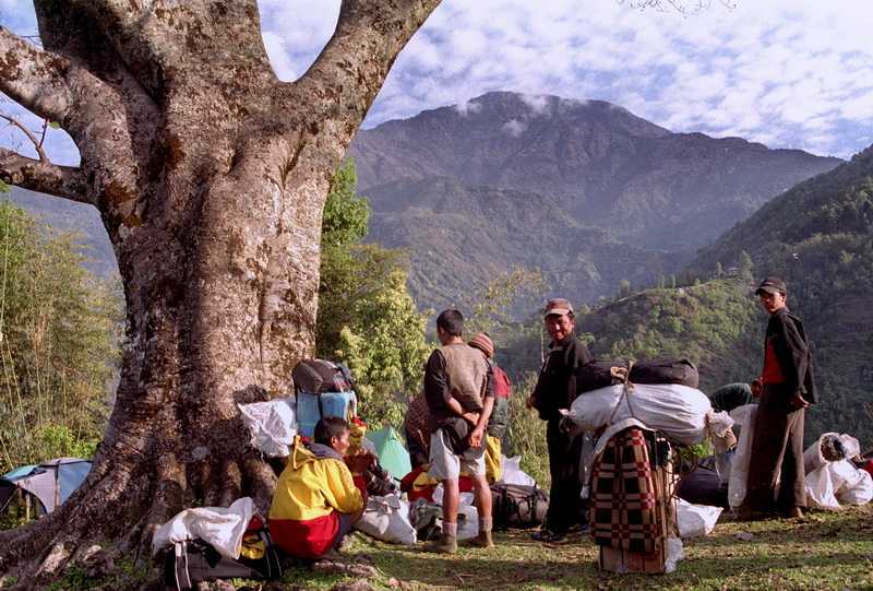 | 30.04.2003 Mit den vielen großen und kleinen Kindern, die uns bestaunen, stundenlang vor dem Zelt stehen, uns beim Auspacken und Schreiben zusehen, Bonbons bekommen, aber sich nicht mit Seife waschen wollen, Reißaus nehmen, obwohl sie es bitter nötig hätten. Nach dem Abendessen entsteht spontan ein kleines Lagerfeuer zwischen den Zelten. Phadindra muss gerade Wache stehen und so vergeht für ihn die Zeit viel schneller, ich versuche noch einige alte Lieder zum Besten zu geben, kein Kommentar, aber irgendwie schön.