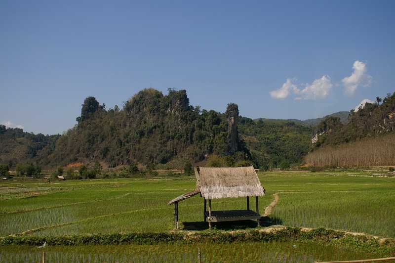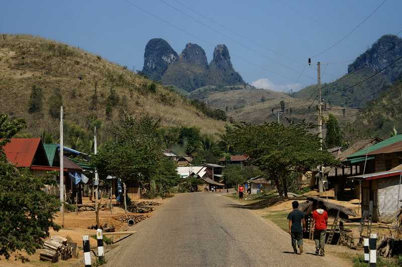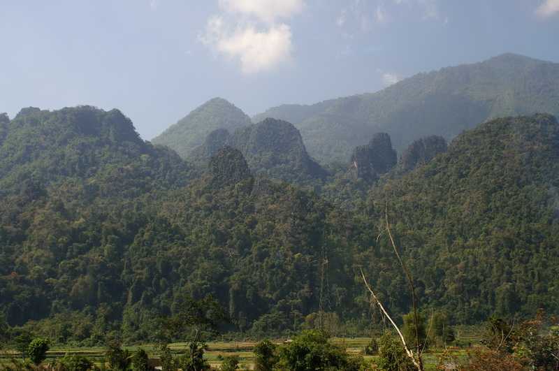 09.02.2010 ... 10 Uhr sollte es los gehen, nach ½ 11 warten wir immer noch auf irgend jemanden. Einige Fahrgäste, die bei uns keinen Platz mehr finden, haben Glück und werden in einen Minibus verfrachtet. Endlich fahren wir ab. Die Strecke heute zwischen Vang Vieng und Luang Prabang soll die landschaftlich schönste Strecke des Landes sein, was ich bestätigen kann. Grüner dichter Dschungel zieht an unseren Fenstern vorüber. Die Straße zieht sich in wirklich endlosen Schleifen und Serpentinen bergauf bergab durch eine herrliche grüne Berglandschaft. Bizarre steile Berge ragen aus dem Grün in den Himmel. Hier müsste man einmal mit dem Rad entlang fahren. Das haben sich einige Rad-Puristen sicher auch gedacht, denn wir sehen ab und zu einzelne Radler mit Gepäcktaschen, die sich die Serpentinen im großen Gang hochquälen. Zahllose Yao- und Hmong-Dörfer liegen am Straßenrand, in kleinen Kneipchen und Lädchen werden verschiedene Dinge angeboten. Ab und zu laden Guesthouses zur Übernachtung ein. Neben einigen der Holz- und Bambuswohnhütten stehen riesige Satellitenschüsseln aus Drahtgittern. Elektrizität gibt es mittlerweile in jedem Haushalt an den Hauptstraßen. Auf den glatten Asphaltstraßen sind viele Schulkinder in ihren Uniformen zu sehen, entweder zu Fuß oder per Rad unterwegs. Die vielen Kinder in den Dörfern am Straßenrand leben ziemlich gefährlich, da sie beim Spielen schon mal auf die Fahrbahn geraten können. Die Haustiere leben sowieso gefährlich hier und landen meist in jungen Jahren hinweggemäht durch den Schnitter Pneu flachgepresst in Kochtopf und Bratpfanne. Unsere flachen Freunde. Es gibt zwar Schilder vor den Dörfern mit Geschwindigkeistbegrenzung auf 50 km/h, es hält sich aber keine Sau, geschweige denn ein Fahrer daran. Nach ca. 60 km, kurz vor Kasi enden die Karstberge, die Landschaft wird flacher. In einer großen Gaststätte wird hier eine Rast eingelegt. Das Buspersonal bekommt ihr Essen gratis. Nach Kasi beginnt wieder die Karstlandschaft, die uns an Laos so ungemein reizt. Der Bus fährt jetzt immer bergauf über hohe Pässe, quält sich um endlos viele Kurven herum, meistens hupt der Fahrer vor diesen unübersichtlichen Kurven. Die Straßen sind zwar zweispurig, in den engen Kurven können aber zwei Busse oder LKW nicht aneinander vorbeifahren. Das Hupen nützt nicht immer etwas, da hier allgemein sehr rücksichtslos gefahren wird. Einige Male schrammen wir knapp an einem Unfall vorbei. Schließlich das Unvermeidliche. In einer engen Kurve kurz vor Phou Khoun treffen sich zwei riesige Busse, sind zu schnell, bremsen nicht rechtzeitig, wir sind zum Glück an der Bergseite. Der uns entgegenkommende Fahrer verreißt das Lenkrad, um nicht mit unserem Bus zusammenzustoßen, der gewaltige Koloss kracht lautstark auf die breite Schutzkante aus mit einem Stahlnetz zusammengehaltenen Steinen, kommt direkt über einem Abhang schwankend zum Stehen. Uns rast das Herz und zittern die Knie. Zum Glück ist nichts Schlimmeres passiert, die meisten der Passagiere haben es gar nicht gesehen oder bemerkt. Die Busfahrer und viele Neugierige steigen aus, um den Schaden zu besehen. Hinter uns stauen sich weitere Fahrzeuge. Als ich gerade überlege, wie alle Fahrgäste des hohen VIP-Busses aus Luang Prabang nach Vientiane kommen wollen, gelingt es dessen Fahrer, den schweren Koloss wieder von dem Steinwall herunterzufahren. Alle steigen ein und weiter geht die Hatz. Alle sind mit dem Schrecken davongekommen. Kurz darauf pausieren wir an dem Aussichtspunkt Phou Khoun. Soweit das Auge reicht, grüne Karstberge in allen Größen und Höhen. Manche sehen aus wie ein Finger oder eine Hand. Viele gerodete brachliegende Flächen sehen wir, aber auch mit neuen Bäumen aufgeforstete Bereiche. 14 Uhr erreichen wir die Straßenkreuzung nach Phonsavan, 131 km von hier liegt die berühmte Ebene der Tonkrüge, die wir eigentlich besuchen wollten. Aufgrund der langwierigen Busfahrten müssen wir diese Etappe in unserem knapp bemessenen Reiseplan leider fallen lassen. Es hätte uns weitere zwei Tage gekostet. Es ist 14 Uhr, 100 km sind geschafft, in 4 von 5 veranschlagten Std. 127 km liegen noch vor uns, somit sind diese 5 Std. auf keinen Fall auch nur annähernd zu schaffen. Weiter geht die Berg- und Talfahrt auf der kurvenreichen Strecke, die dem Fahrer alles abverlangt. Endlich erreichen wir nach 8 Std. Fahrt mit drei Pausen und der Zwangspause gegen 17 Uhr 30 die alte Haupt- und Königsstadt Luang Prabang. Wir werden wieder von einem freundlichen Schlepper angesprochen, Lang ist Englisch-Student, möchte Englischlehrer werden, ist 23 Jahre alt und verdient sich als Mädchen für Alles in seinem kleinen Hotel ein bischen Geld dazu. Er bringt uns mittels Tuk-Tuk zu einem ruhigen, liebevoll eingerichteten Haus namens Sisombath oder Vannasone Guest House, neben dem Kloster Vat Manorom gelegen, im Erdgeschoss sind noch zwei schöne Zimmer mit Bad für uns frei. Hinterher beichtet mir Lang, dass er auf der uns gezeigten Karte den Standort etwas mehr im Zentrum eingemalt hatte. Mietzi legt sich leichenblass gleich ins Bett, die Arme ist seekrank beim heutigen Busfahren geworden. Abends sitze ich mit Witz und Carmen am Mekongufer, wir sind von unserer Unterkunft noch einmal in die City gelaufen, um etwas Bewegung in unsere erstarrten Körper zu bekommen. Vor uns liegen die verschiedenen Langboote im Mekongwasser. Wir verspeisen an einer Garküche gebratenen Reis mit Huhn, für Mietzi lasse ich eine Portion einpacken. Nach unserer Rückkehr macht sie sich mit gutem Appetit darüber her.