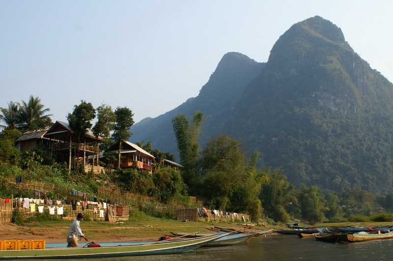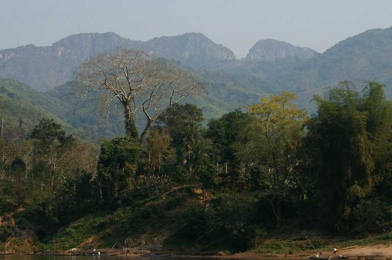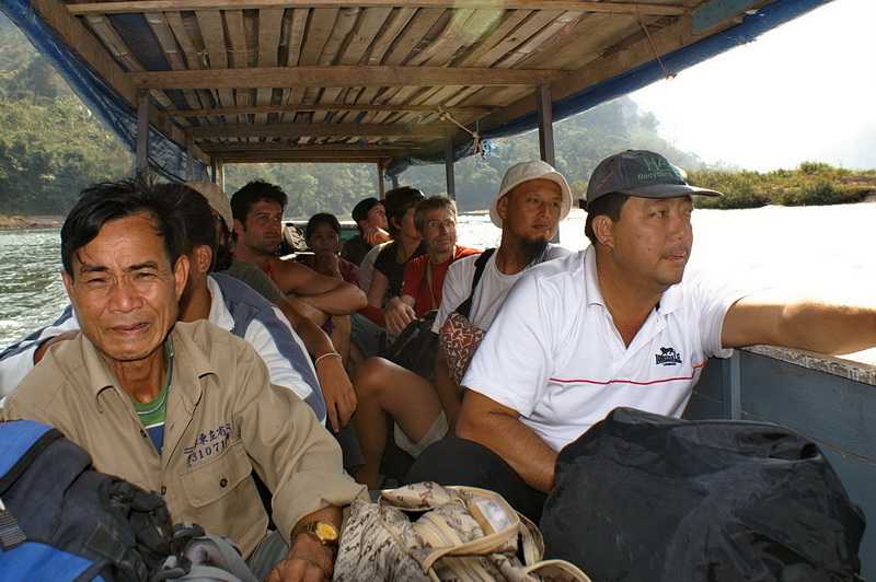 16.02.2010 ... Die Straße wird gebaut von China, alles ist mit roten Plakaten und Bannern versehen, Hammer und Sichel wehen im Staub der vorrüber fahrenden Autos und Busse. 11 Uhr in Oudomxai am Busbahnhof kurze Mittagspause mit unserem Fahrer, dem wir das Essen mit bezahlen. Wir verlassen den Ort nach Süden und links geht es Richtung Luang Prabang, das ist unser Weg. Die Straße ist zwar aspahaltiert, aber schmal, teilweise ausgefranst und mit Schlaglöchern übersät, es sind aber wenig Fahrzeuge unterwegs. 14 Uhr biegen wir in Pakmong nach links ab, die Straße führt nach vielen km einmal zur vietnamesischen Grenze weiter. Ab hier gibt es wieder Berge und Serpentinen. 14 Uhr erreichen wir unser Ziel Nong Kiao, malerisch am Nam Ou Fluss inmitten steiler Karstberge gelegen. Mit dem lokalen Bus hätten wir für diese 230 km viel länger gebraucht, wären erst am Abend im Dunkeln hier gewesen. So haben wir noch viel Zeit, nach Muang Ngoi Kao weiterzufahren. Unser Fahrer düst wieder nach Luang Namtha zurück. Ich verlange am Bootsticketschalter 4 Fahrkarten nach Muang Ngoi Kao. Die Bootsleute verstehen aber immer Muang Khoua, sie sagen, das nächste Boot dahin fährt erst morgen vormittag 11 Uhr wieder, es brauche ca. 8 Std. bis dahin. Heute sei es zu spät. Ratlos schlage ich meinen Reiseführer auf, buchstabiere den Ort Muang Ngoi Kao. Aaah, nach Muang Ngoi will ich, das hätte ich doch gleich sagen sollen, dorthin fährt natürlich in Kürze ein Boot ab. Die Einheimischen lassen die letzte Silbe Kao weg, wahrscheinlich auch wegen der Ähnlichkeit mit Muang Khoua. Erleichtert kaufe ich 4 Tickets. Nach kurzer Wartezeit besteigen wir das Langboot, das in 1¼ Stunde stromauf durch das Bergtal des schmalen Nam Ou Flusses inmitten von grünen Karstbergen, vieler kleiner Inseln, flankiert von riesigen Urwaldbäumen und Bäumen mit vom Wasser freigespülten Wurzelballen den kleinen Ort Muang Ngoi Kao erreicht. Unterwegs einige schmale Stromschnellen, bei dessen geschickter Durchquerung flussaufwärts mir es den blanken Schweiß auf die Stirn treibt. Unterwegs halten wir an Fischerdörfern, lassen Passagiere mit eingekauften Waren aussteigen. Bald ist es aber geschafft. Ein wahres Paradies vor einer grandiosen Bergkulisse tut sich vor uns auf. Am Ufer stehen einige kleine Bungalows für die Touristen. Eine Steintreppe führt auf die einzige Hauptstraße des Ortes, eher ein Weg. 16 Uhr 15. Wir suchen und finden eine schöne und preiswerte Unterkunft in einem Bungalow direkt am Fluss in Nicksa´s Place, entgegen dem Reiseführer sehr ruhig hier. Wir haben einen Raum mit zwei Doppelbetten für uns vier, davor zwei Hängematten. 50.000 Kip die Nacht, ca. 4 Euro, einer pro Person. Im Ort gibt es keine Autos, da keine Straße hierher führt. Abends beginnen ab Sonnenuntergang einige Generatoren zu tuckern, die liefern den Strom zu den wenigen Häusern. Die schwachen Glühlampen glimmen im Takt des Verbrennungsmotors. Gehen heute 21 Uhr zeitig schlafen, da ein ganzer Tag auf Achse müde macht. |