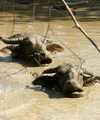 04. 02. Der zweite Tag im Phou Hin Boun Nationalpark bricht an. Sonnenaufgang über dem Dorf, die anderen matten noch. 8 Uhr Frühstück. 30 Minuten später brechen wir auf, laufen über die um das Dorf liegenden Felder, hinein in den dichten Dschungel, der oft aus dünnem Bambus und meterhohen Farnen besteht. Dazwischen riesige meterdicke Urwaldriesen, teilweise mit Brettwurzeln. Wir bekommen einen neuen etwas aufdringlichen älteren einheimischen Führer, der einem nicht von der Pelle rückt. Er zählt mir einige Tierarten auf, die es im Nationalpark gibt. 113 Säugetier-, 160 Vogel-, 81 Reptilien- und 145 Fischarten sollen hier leben. Keiner hat die Insektenarten gezählt. Hier leben u. a. Elefanten, Tiger, verschiedene Affenarten, Gaur, das größte lebende wilde Rind und Serau, eine asiatische Ziegenart. Dazu kommen mindestens 43 verschiedene Fledermausarten, ...