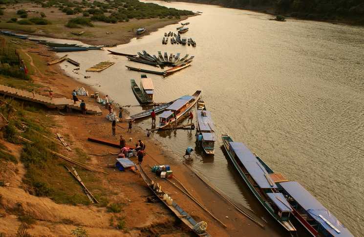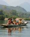 18. 02. Früh findet ein 14-tägiger Wochenmarkt statt. Viele Verkäufer und Käufer sind erschienen. Es wird gehandelt, gefeilscht, verkauft und gekauft. Wieder einmal müssen wir unsere Zelte abbrechen, der Abschied von Muang Ngoi fällt uns besonders schwer, es hat uns prima gefallen hier. Doch leider wartet der Flieger nicht auf uns. Nach dem Frühstück und dem Eindecken mit belegten Baguettes machen wir uns auf den Weg zum Boot, das uns nach Nong Kiao und von dort weiter nach Luang Prabang bringen soll. Wir haben alles vorbestellt, in Nong Kiao wissen sie Bescheid, dass wir kommen. Das erste Boot ist kurz nach 9 Uhr 30 losgefahren, wir kommen mitsamt Gepäck ins zweite, nach uns fährt noch ein drittes. Nach 5 min. Fahrt das Unvermeidliche, der Motor stottert, geht aus, der Kapitän startet erneut, stottern, dann fällt er für immer aus.