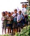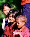 06. 10. 6:00 dann pünktlich der zeitige Wake-up-Tee. Das Wetter ist wolkenlos, wir genießen die Sicht auf den Boudha Himal (6672m) mit unserem Rupina La. Abstieg über das schiefergedeckte Pokhari ins Rangrung-Tal hinunter auf 1100m, über den Fluß und auf der anderen Seite in steilen Kehren hoch durch das Dorf Snan hinauf zur modernen Stadt Barpak (1940m) mit ca. 450 Häusern und ca. 4500 Bewohnern und einer alten Seilbahn, zur Zeit nicht benutzbar. Auf dem großen Platz inmitten einiger Schulen breiten wir unsere blaue Plane aus und nehmen unser Mittagsmahl inmitten Hunderter Kinder ein.