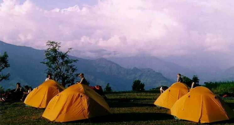 08. 10. Früh wieder mal wolkenlos, wir sind dem Rupina La Paß nahe zum Greifen. Es ist sehr kalt und unsere Träger erscheinen nach dem gestrigen anstrengenden Tag erst 8:00, so daß wir erst 8:30 losmarschieren. Es geht leicht bergauf, bergab durch feuchten Urwald, später wieder mit riesigen Tannen bestanden, weiter über eine Schafalm mit vielen Tieren, zwei kläffenden schönen Hunden und drei Hirten. Ab 3350m verschwinden langsam die Bäume und es geht bergauf, an einem Kreuzweg geradeaus, links hoch der Weg hätte zum See Narte Pokhari und weiter zum Paß geführt,