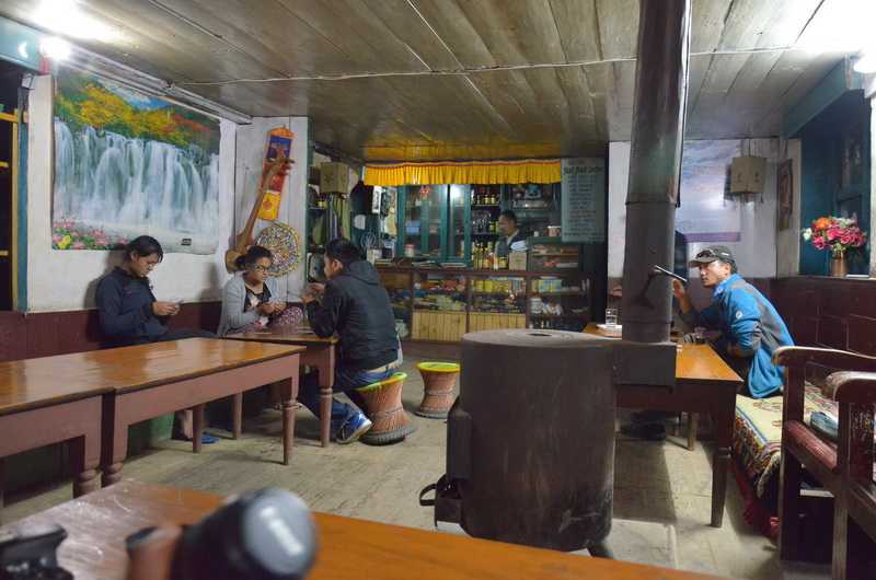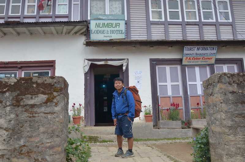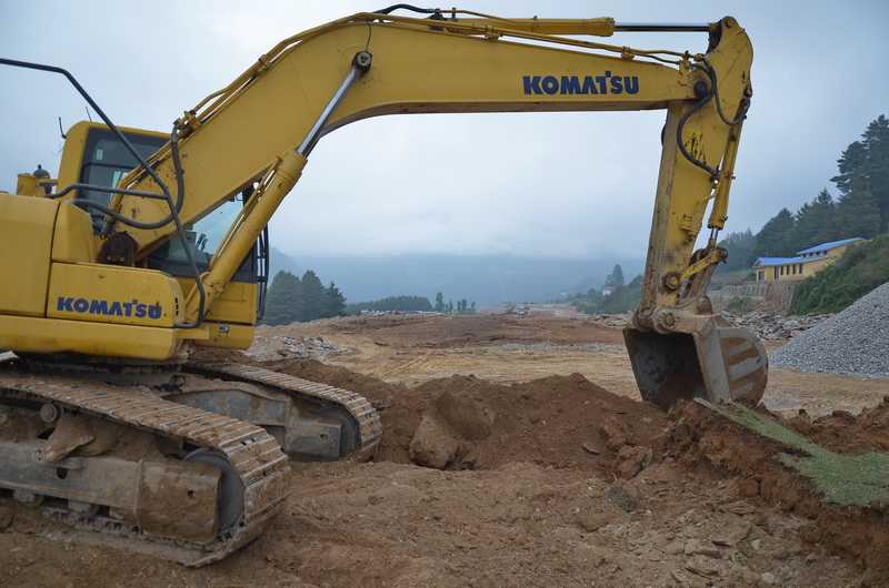 21. 05. 2013 ...Am Bachlauf im Zwischental geht es nun steil aufwärts, vorbei an winzigen unter Wasser stehenden Reisfeldern. Durch die Wegevielfalt sind wir etwas unsicher geworden, müssen weiter oben an den Weizenfeldern Bauern nach dem Weg Richtung Phaplu fragen. Manchmal führt der Weg direkt durch oder am Rand der Terrasse eines Getreidefeldes entlang. Endlich finden wir den Hauptweg, der uns direkt auf unseren Herweg führt. Wir durchqueren erneut die Hochalm Ghumne und Mera und gelangen auf den Pass. Leider ist heute die Teehütte verschlossen, sodass wir unser mitgebrachtes Essen davor verzehren. Der Aufstieg zum Pass dauert über 7 Std. und der Abstieg nach Phaplu nur rekordverdächtige 1:20 Std., wir laufen erst auf der Erdstraße talwärts, dann abkürzend auf den diversen direkt nach unten führenden Holzwegen der Waldarbeiter ins Tal, die an vielen Holzstößen vorbei alle nach Phaplu führen. Oberhalb des Flughafenortes ein großer neugebauter Schulkomplex. Die Bevölkerung hier sieht tibetisch aus, es sind aber Sherpa, die vor einigen hundert Jahren von Tibet nach Nepal eingewandert sind, Ihre Traditionen, Kleidung und Baustil haben sie beibehalten. Phaplu (2469 m) begrüßt uns mit starkem Nebel und einem riesigen Hotelneubau links. Es sind keine Touristen anwesend, da die 700 m lange Landebahn derzeit komplett neu gebaut wird. Wir checken ein in der Numbur Lodge in einem Dreibettzimmer. Toiletten und Waschbecken liegen für alle gemeinsam am Ende des Flures. Abendessen bekommen wir aus der großen Sherpa-Küche a la Card serviert. Komplett bezahlen wir 960 NPR, das Zimmer 380 NPR, der Rest für Essen (130-170 NPR) und Tee bzw. auch heißes Wasser (25 NPR) für unsere mitgebrachten Teebeutel. Bei einem Rundgang zum Flugfeld erkenne ich, dass es dieses Jahr wohl nichts mehr werden wird mit Flugbetrieb. Die Landepiste wird begradigt, es liegen große und kleine Stein für den Unterboden bereit, sogar eine Steinzerkleinerungsanlage ist aufgebaut worden. Allerdings sind heute nur ein Bagger und ein Kipper zu sehen, die auf dem riesigen Gelände grotesk winzig und verloren wirken. Phaplu ist für die südlich von Lukla gelegene Region Solukhumbu eine wichtige Flugdestination. In den vielen kleinen Läden und Lodges herrscht Ebbe, die Touristen fehlen. Überall stehen Angestellte von Agenturen vor ihren Büros und schwatzen miteinander. |