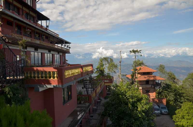 27. 05. 2013 ...Wir steigen ab im am höchsten gelegenen Drei-Sterne-Hotel von Nagarkot, dem „View Point“, einem originellen nepalesischen Ziegelbau mit künstlerischen Holzschnitzereien an Fenstern und Türen, den alten Königsbauten nachempfunden. Ich bekomme eines der vier großzügig verglasten und gut ausgestatteten Zimmer (Nr. 136) im oberen Stockwerk, der Blick auf die Himalayariesen ist sogar vom Bett aus gesichert. Nur, dass zur Zeit die nahe Himalayabergkette voll in Wolken gehüllt ist. Einzig die beiden Zimmer 139 und 140 sind noch ein Stockwerk höher, noch darüber gelangt man auf Treppen zum großen Dachbalkon mit dem höchsten unverbaubarem Rundblick Nagarkots auf das Kathmandutal und die Berge. Danach wandern wir noch einmal zu einer kleinen Gastwirtschaft mit Bergaussicht. Dort trinken wir Bier und essen dazu scharf gebratene kleine Fleischstücke. Unterhalb unseres Hotels versuchen derweil Arbeiter, einen ins Tal gestürzten kleinen LKW mit Hilfe einer Seilwinde wieder nach oben zu ziehen. Zum Abendessen bei Reis mit Knoblauchpilzen bzw. Beef Sizzler sowie Carlsberg Beer sitzen wir mit einigen Touristen aus Serbien auf der Terrasse vor dem Restaurant. Eine nepalesische Firma hat eine kleine Betriebsfeier. Abends genieße ich die heiße Dusche, das flauschig-dicke Badetuch und das weiche Doppelbett mit zwei kuscheligen Decken. |