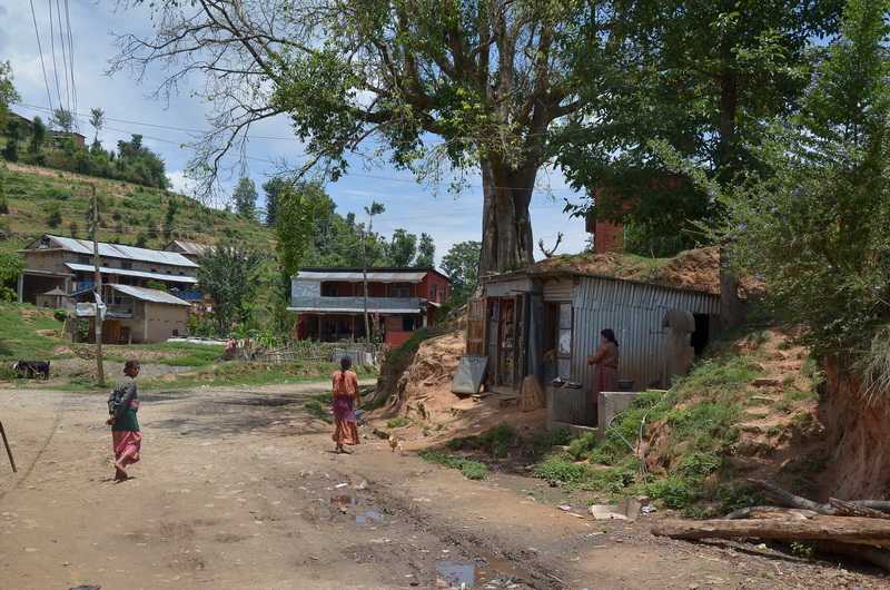 28. 05. 2013 ...Von hier aus fahren wir auf einer nagelneuen einspurigen Asphaltstraße den Berg hinunter, einer Abkürzung nach Bhaktapur. Wir stoßen unten auf ca. 1750 m Höhe auf die normale Straße, ein offizielles Verkehrsschild weist uns den Weg nach Banepa. Vorsichtshalber erkundigen wir uns bei einem Einheimischen: alles ok, Straße frei.
