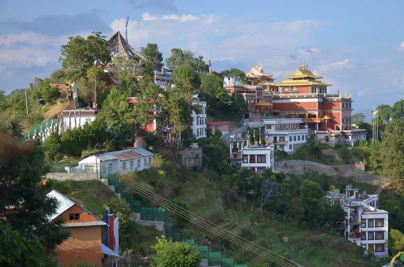20 km führt die Piste uns bis nach Namo Buddha, einem riesigen Klosterkomplex, auf einem Bergrücken gelegen. Unser Jeep wird vor dem Tor abgestellt, wir nehmen unser Gepäck und betreten das Kloster. Es ist nach tibetischer Art errichtet und sehr reich verziert und geschmückt.