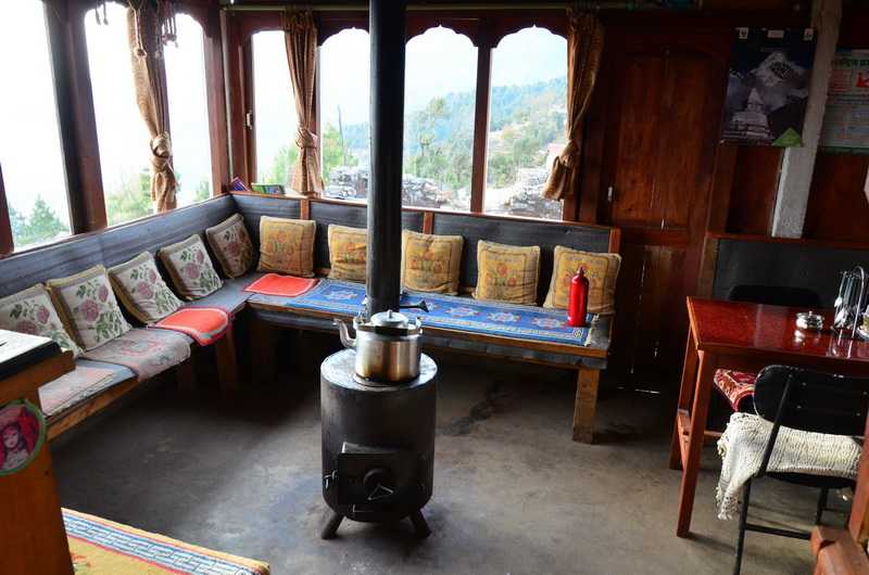 13. 03. 2014 ...Inzwischen kommen wir ins Gespräch mit einer Rothenburger (nicht ob der Tauber) Tochter, die Ihren Vater nach Nepal mitbrachte. Sie haben gerade Gosainkund geschafft, der Vater ist geschafft, sie sprechen von viel Schnee auf den Wegen und dem Pass, von kalten Lodges. Wir werden sehen. Danach passieren wir Thotundanda (2470 m), Gul Bhanjyang (Golphu) (2130 m), Ghyanggaon und schließlich erreichen wir 16 Uhr 30 unser heutiges Ziel Kutumsang. Bis hierher fährt sogar einmal am Tag auf abenteuerlicher Strecke ein Bus. In der ersten Lodge rechts fragen wir nach einem Zimmer. Es ist die Mountain View Lodge, der 65-jährige Besitzer Mingmar Lama und seine 5 Jahre jüngere Schwägerin kommen aus Tibet und sind sehr freundlich. Die Einrichtung innen ist gut, praktisch und sauber, mit einem eisernen Kanonenofen und Tischen ringsum. Wir sind die einzigen Gäste. Das Wasser in der Gemeinschaftsdusche im Erdgeschoss ist heiß. Auf der Wiese vor der Lodge haben wir Ausblick auf die hohen Schneeberge. Von links sehen wir: die Berge um den Langtang Lirung (7227 m), die Berge (z. B. Baden Powell - 5822 m) um den Ganjala Pass (5130 m), Pangen Dopku (5930 m), Ganchenpo (6387 m), die gleichmäßige Spitze des heiligen grünen Berges Ama Yangri, direkt dahinter der Urkinmang (6151 m) am Tilman’s Pass (5308 m), rechts hinter dem Ama Yangri lugt aus Tibet die Spitze des Achttausenders Shisha Pangma hervor, dann die Doppelgipfel Dorje Lakpa (6966 m) und Langpogang West (6733m), Jugal (Yangri) (6535 m) und Phurbochyachu (6637 m) und viele andere. Wir erleben hier in Kutumsang einen einmalig schönen aber kalten windigen Sonnenuntergang, sehen noch in der Ferne den großen Strom des Trisuli leuchten. Im Zimmer gibt es sogar Licht. Im Aufenthaltsraum kann ich meinen Foto-Akku aufladen. Zum Abendessen bestellen wir Pasta mit Eiern und gebratene Kartoffeln. Heute und alle folgenden Nächte unseres Treks schlafe ich mit Decken der Lodge, blanket, wie es sie in allen Lodges als Zugabe gibt. Da es Saisonanfang ist, sind diese immer sauber gewaschen. Touristen schlafen fast ausschließlich im eigenen Schlafsack. So kann meiner in der Hülle bleiben. Nach dem Abendessen á la card gehen wir 20 Uhr schlafen. 1915 Rupees bezahle ich für diese Lodge. +1200 m / -885 m in 8:45 Std. (2:00 Std. Pause) |