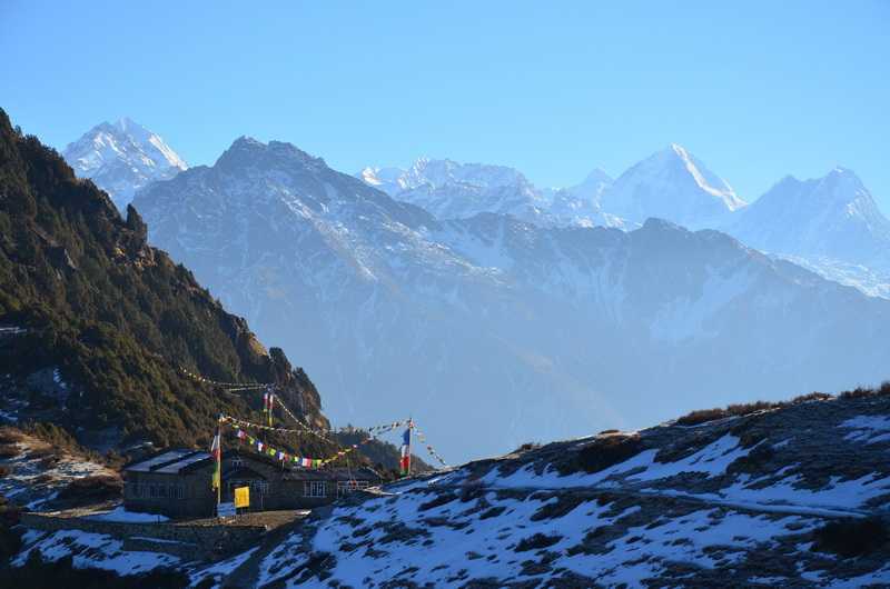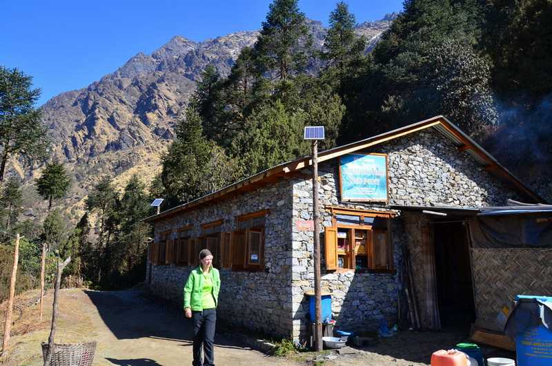 15. 03. 2014 ...Nach unserem Frühstück herzlicher Abschied von unserem Wirt um 8 Uhr. Heute liegt noch eine Menge Schnee auf den Wegen und in den Wäldern, wir müssen aufpassen, dass wir nicht aus- oder abrutschen. Gefährlich steil ist es allerdings nie. Die Sonne kann schlecht zwischen die dichten Bäume vordringen, um den Schnee zu schmelzen. So nehmen wir auf den steilen vereisten Wegen und Schneefeldern die Trekkingstöcke zu Hilfe. Nach eineinhalb Stunden erreichen wir das nagelneue Hotel Natural View Point in Mera Kharka (3366 m). Ab Mittag erreichen uns wieder die Wolken und wir den Ort Ghopte (3430 m). Weiter über Dhupi Chaur erreichen wir am Nachmittag Phedi, den letzten großen Ort unterhalb des Laurebina Passes. In der oberen Dawababy Redpanda Hotel & Lodge bekommen wir wieder ein Zweibettzimmer. Phadindra und Khem erhalten auch immer ein Zweibettzimmer, da noch nicht so viele Touristen die Zimmer belegen. Einige andere Touristen und Ihre nepalesischen Begleiter versammeln sich im geheizten Aufenthalts- und Speiseraum. Der Platz am eisernen Ofen ist “heiß” begehrt. Das Feuerholz und natürlich auch alles andere, wie Speisen, Getränke, Gerätschaften usw. müssen mühsam hochgeschleppt und die Träger gut dafür bezahlt werden. 2770 Rupees kostet mich diese Lodge, das Zimmer 600 Rs. +805 m / -705 m in 6:30 Std. (1:30 Std. Pause) |