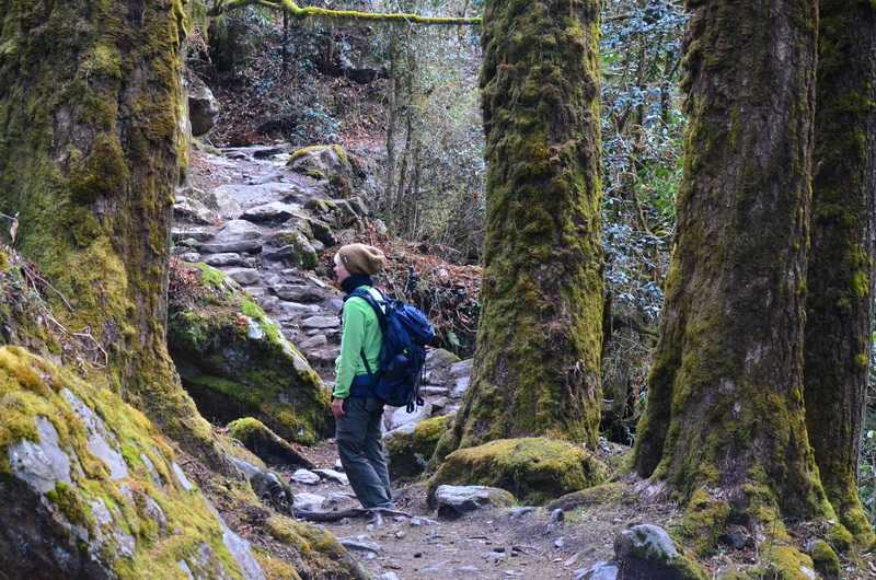 19. 03. 2014 ...Kurz danach durchqueren wir den Ort Gumnachowk oder River Side (2769 m). Ghodatabela heißt Pferdesattel, wir erreichen den Ort 10 Uhr 30. Genau über uns liegt der 7227 m hohe Langtang Lirung, der König der Langtang Berge. Wir sitzen alle vier gemeinsam draußen im Sonnenschein am Tisch, bestellen uns Tee, genießen die herrliche Bergsicht und die Wärme des schönen Tages. Bis hier war das Langtang Tal steil und eng und dicht bewaldet. Ab Ghodatabela weitet sich das Tal aus zu einem breiten sonnendurchfluteten Wiesental mit steinumgrenzten Feldern, Büschen und Bäumen, der Langtang River fließt unsichtbar weit unten im Tal. Wir sehen einige tibetische Wasser-Gebetsmühlen, angetrieben von den vielen Seitenbächen. Am Ortsausgang ein weiterer Army Check Post des Langtang Nationalparks, wieder zeige ich unsere Permits vor, werden wir in ein Buch eingetragen In Thyangsyap Village (3140 m) kehren wir im Tibetan Guest House zum Lunch ein. Danach kommen in Chyamki noch einige Läden und Teehäuser, wir kosten den Yak Curd, Joghurt von der Yakmilch, sehr kräftig und schmackhaft. Marie kostet den herbsüßen gelben Sea Buckthorn Juice, also Sanddornsaft. Kurz vor dem endgültigen Aufstieg nach Langtang überschreiten wir eine lange Hängebrücke über einen links vom Langtang Lirung herabfließenden Bach. Eine Stunde nach Thyangsyap erreichen wir unseren Zielort Langtang. Es gibt ca. 32 Häuser, eines davon das Shangrila Guest House, in dem Verwandte von Pasang Tamang aus Lama Hotel mit Kindern und Enkel leben und wo wir heute als einzige Gäste übernachten. Wir bekommen aus der Küche jeweils einen Eimer mit heißem Wasser zum Duschen. Es gibt ein Kloster, die Langtang Gompa und direkt über uns thront der Langtang Lirung. Am Nachmittag beginnt es zu schneien, es ist sehr kalt, in unserem Speisezimmer der Lodge aber sehr warm und gemütlich durch das Feuerchen im zentralen Ofen. Wir sitzen zu viert um den Ofen. Später kommen die Kinder der Wirtsleute hinzu. Der junge Wirtssohn erzählt uns geduldig die Sage über die Besiedlung des Langtang Tales, als ein tibetischer Hirte seinem flüchtigen Ochsen über die Grenze nach Nepal nachjagte und welche Abenteuer die beiden im Langtang Tal erlebten. Langtang bedeutet: Lang = Rind, Tang = gut mit Gras gefüllt. Die kälteste Nacht heute bisher. 2650 Rs. bezahle ich für diese Lodge. +1060 m / -110 m in 7:00 Std. (1:30 Std. Pause) |